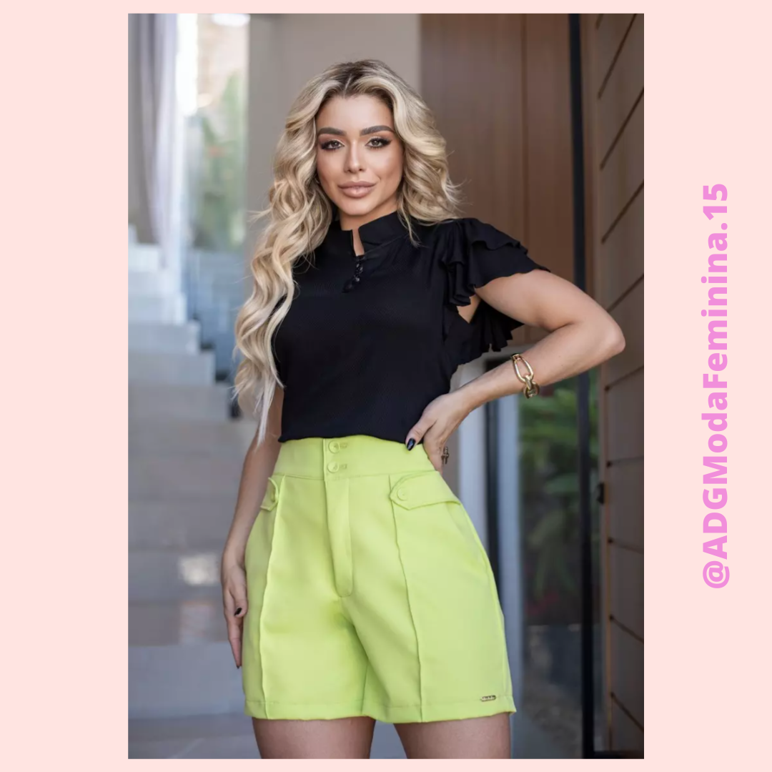 Short social em alfaiataria de primeira qualidade. Modelo com detalhes nas laterais e botões cobertos. Possui forro.